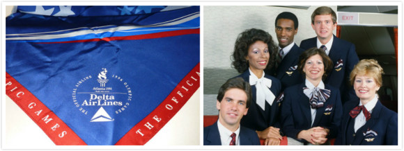 设计师是Omniform的Van Lupu,这套服装是达美史上很经典的一个系列,1984年还获得了职业装协会评选的年度形象大奖。1991年翻新了一次,加入了不少几何图案,外套裙成为了最受欢迎的服饰。1996年,独特的围巾和领带设计还让Delta成为了当年亚特兰大奥运会的官方航空公司。