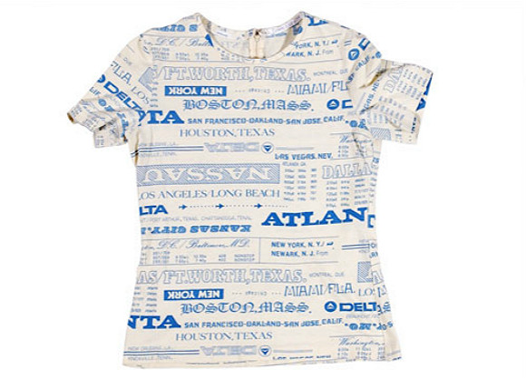 开始流行复古风。女乘务员可选天蓝色和驼色休闲西装,和尼龙包裙。T恤、丝巾和蓝白围裙上有”城市印花“,还有达美的诸多目的地名称。男乘务员也是蓝色、驼色两款套装,配有驼色背心。