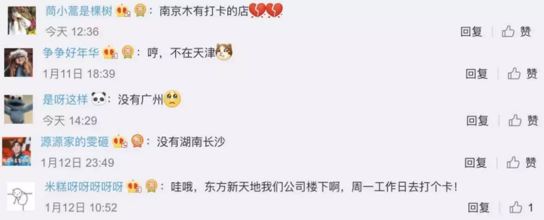 不少粉丝在官博下方暴风哭泣:自己所在的城市没有打卡门店!