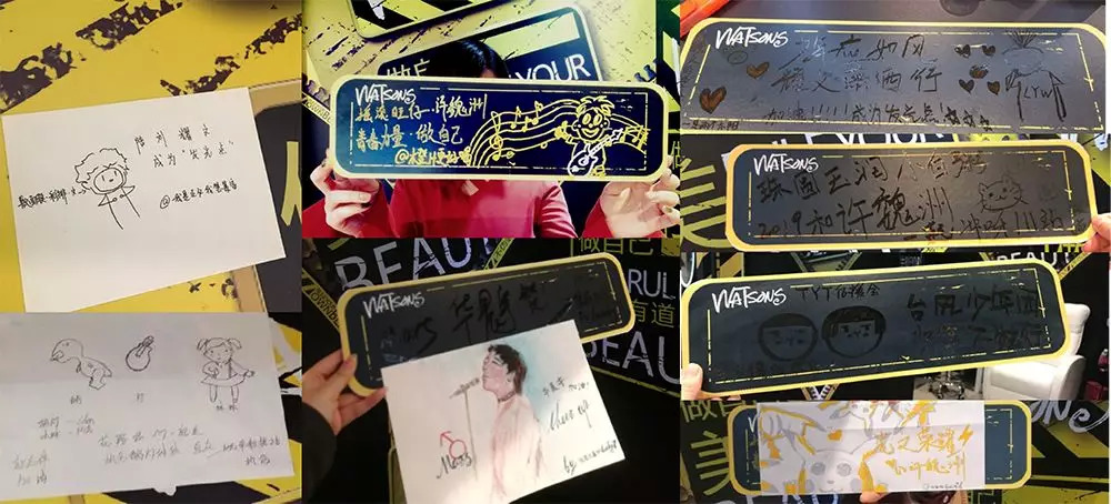 黄黑碰撞的个性设计有点潮,门店里大片的涂鸦墙堪称粉丝界的艺考现场,还有小姐姐们不定时的舞蹈快闪……变身之后的屈臣氏real酷啊!