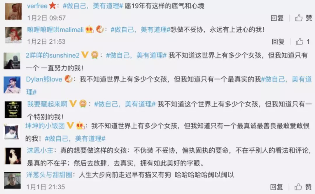 20多个微博KOL、80多家品牌蓝V,也纷纷为女孩们“做自己”声援!微博话题#做自己,美有道理#阅读量直接突破1.1亿,讨论量近200万!