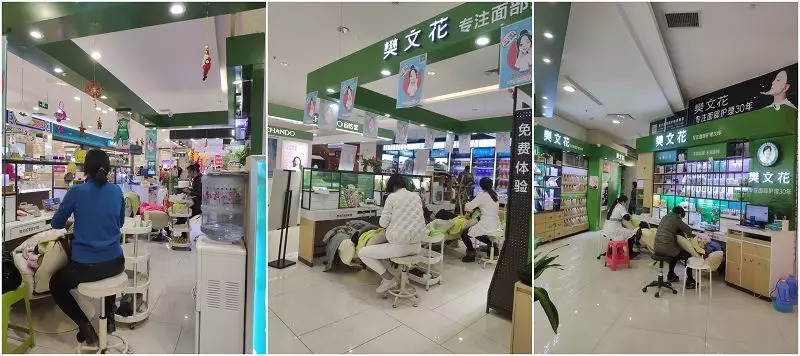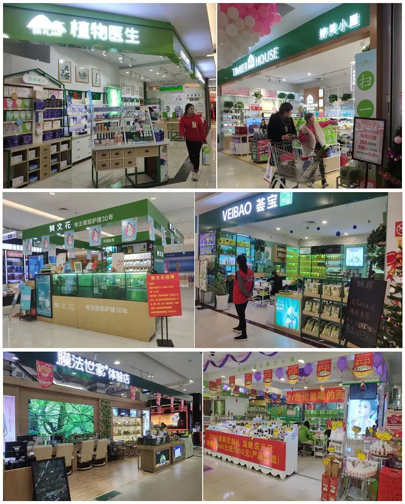 植物医生、樊文花、婷美小屋、荟宝妆园、膜法世家、蝶美膜力小铺、中草集、老中医……目前,主打“植物护肤”理念的单品牌店在县城异常活跃。这些店面的装修风格普遍以绿色为主基调,除了卖产品以外,也注重为顾客做面部护理。
