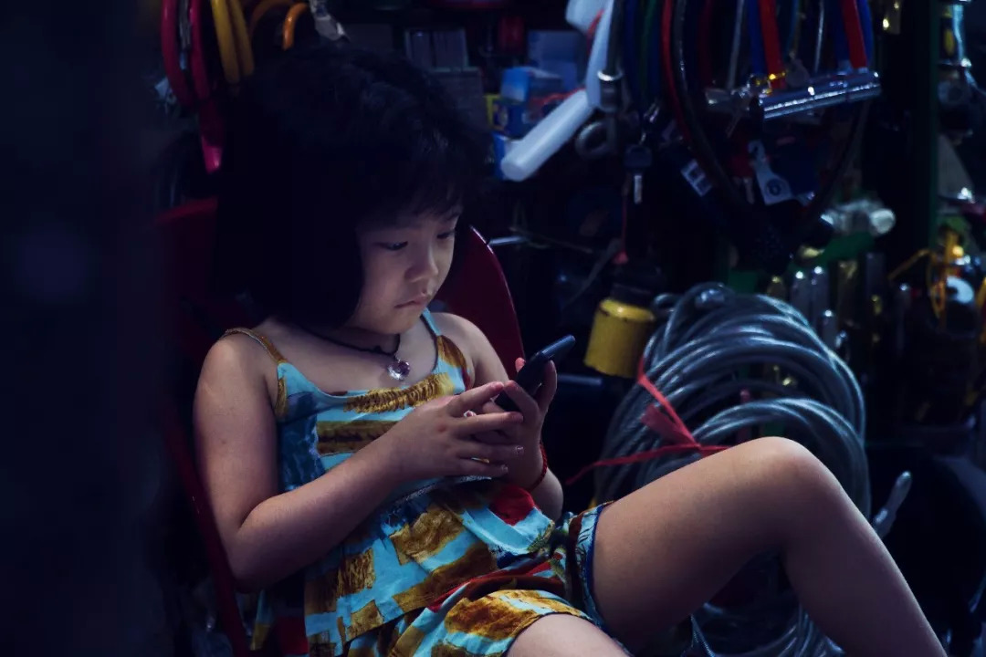 玩手机的越南小朋友