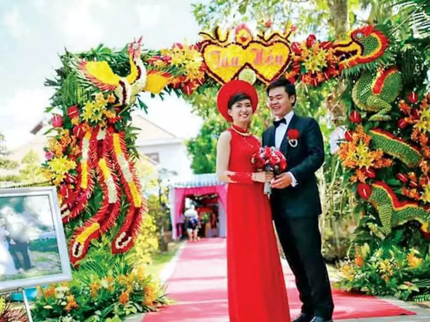 在这里娶一个越南姑娘也不是一件很困难的事情,只要姑娘家认可,金银首饰加礼金花个15000元人民币。婚礼酒宴比中国简单,十人一桌的酒席通常是6 8个菜。
