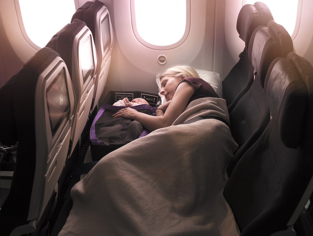 值得一提的是,新西兰航空在传统经济舱的创新,拥有“空中沙发”这一亮眼产品——经济舱一排三个座椅的腿垫可抬起组合成“空中沙发”,让一家三口(两大一小或一大两小)、情侣或闺蜜、以及渴望拥有宽敞个人空间的旅客在经济舱也能平躺。今年新推出的特制儿童安全带包及婴儿摇篮进一步解放了家长双手,也让亲子游的出行更加安全。