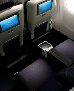 独立机舱中所有座椅设有全长腿垫和伸缩扶手,座位前后距离由上一代38英寸增加至40英寸,个人电视屏幕由10.6英寸增至12.1英寸;每个座椅安设USB接口及供电插座,此外,储物空间、餐饮水平等都有相应提升。