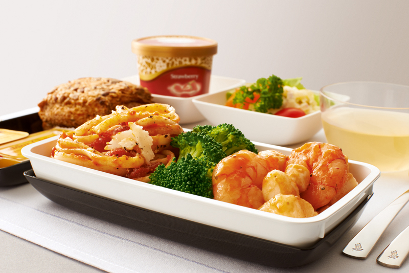 优选经济舱在航班起飞前24小时均可预订优选经济舱“名厨有约”推出的各种美味佳肴,或者也可选择三种机上餐食之一,佐以佳酿,比如一杯欧内斯特•拉佩诺干型典藏香槟。