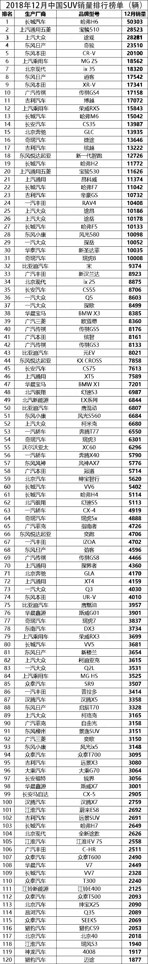 海潮退去,裸泳者现身,12月份248款SUV销量排行榜新鲜出炉,那些发过的誓言,吹过的牛也该水落石出啦!