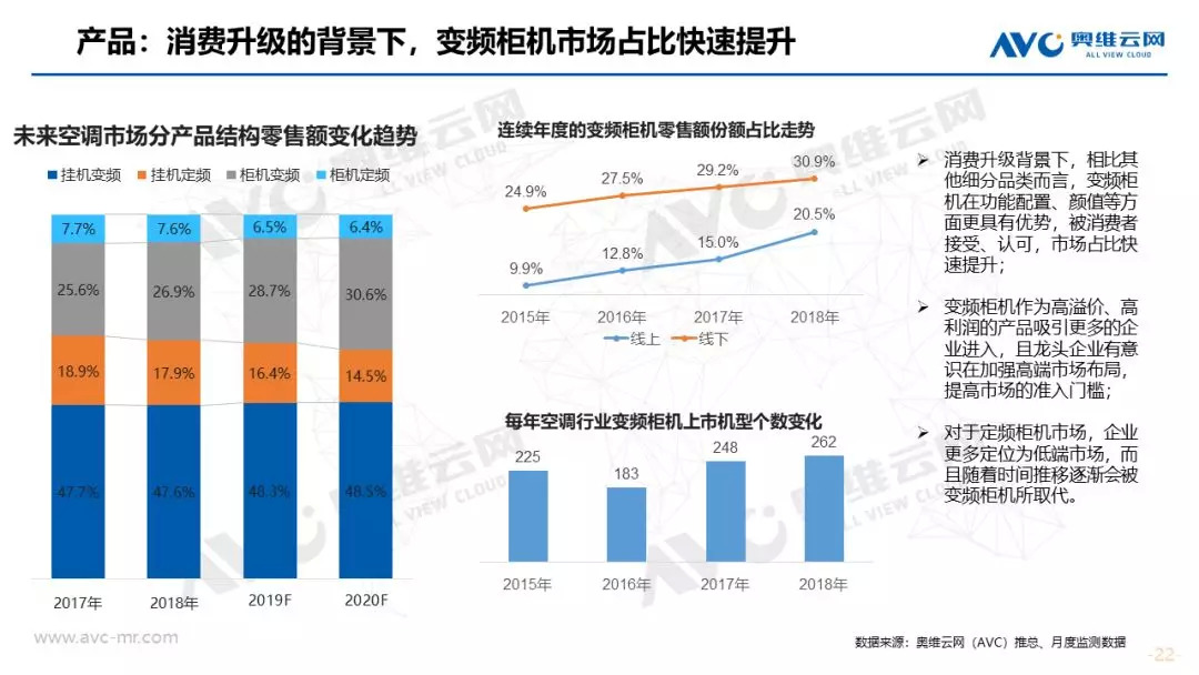市场竞争:在市场增速放缓的情况下,龙头企业价格上涨的幅度明显缩小,且在部分细分市场对于中小企业的价格压力明显增强。线上、线下市场份额持续向头部企业集中,二线品牌生存压力加剧。在产业链上游,龙头企业继续在压缩机、芯片等核心部件加强投入,增强在行业中的话语权和产品定价权。