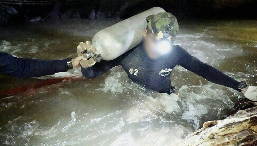 前泰国海豹突击队员库南(Saman Kunan)在运送氧气桶返回的途中因缺氧不幸罹难,要让不会潜水的少年们自己潜水穿过多段积水通道已经被视为“不可能”。