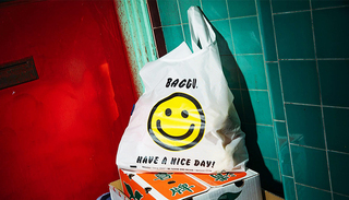这种廉价的“谢谢惠顾”塑料袋可能被视为亚裔标配,也有可能代表着某种潮流,起初,这两种想法都让我非常抗拒。1970年代时,塑料购物袋还是罕见之物,但很快,它们就被世界各地的超市和餐馆所采用。而在唐人街,选择塑料袋作为食品外卖袋更像是一种有意识的行为:在一个物件上同时展示自己的传统和友好,加上借鉴其他地区美国文化的笑脸图案——仿佛在努力吸引白人的注意,并希望种族主义者表现得友好一点。从那时起,这些塑料袋便拥有了某种标志性而又刻奇的地位,从T恤到篮球,各种商品都可能印上一个塑料袋图案。