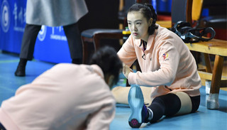 比赛场馆的明亮灯光下,张常宁脸色白里透红,身材也和2015年世界杯、2016年里约奥运会前后没有太大差异,只是左腿上厚重的护具还是扎眼——训练之前,队医帮助她细致地给脚踝、膝盖等处打上固定;训练中间,队医、体能师也是时刻关注着她的情况;结束训练开始拉伸前,队医又第一个赶来询问她有无哪里不适……