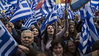 周日,希腊人从全国各地赶到雅典,在议会附近举行集会,并挥舞着希腊国旗。“我们不能容忍这笔交易,放弃我们的马其顿,我们的历史,”67岁的抗议者Amalia Savrami对路透社表示。