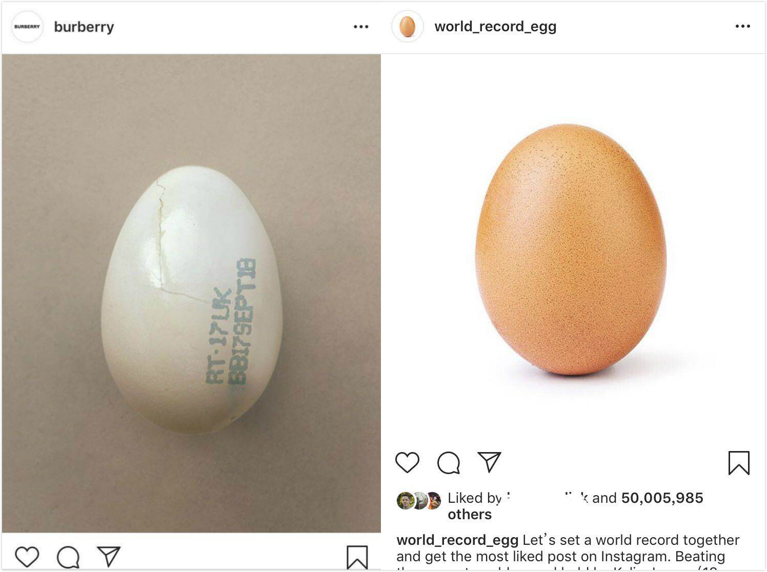 Burberry的想法其实来源于一个名为“world record egg(世界纪录蛋)”的账号。这个神秘账号建立以来,只在1月5号发布过一个帖子,是一个简单的鸡蛋特写。帖子里写着:“让我们一起创造一个世界记录吧,让这个帖子成为Instagram上点赞最多的图片。打败目前Kylie Jenner保持的1800万记录!”