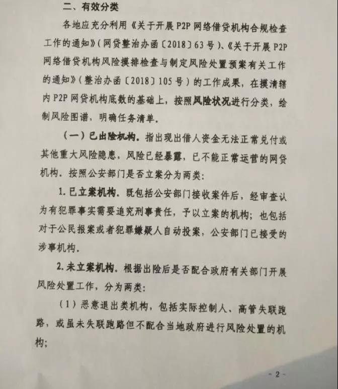 文件对P2P网贷机构进行了明确而细致的划分,要求各地摸清辖内P2P网贷机构的基础上,按照风险状况进行分类,绘制风险图谱、明确任务清单。值得注意的是,这也是文件中最核心的部分。