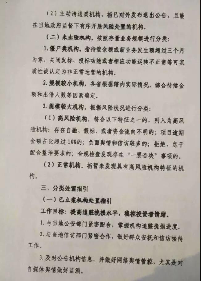 点评:这是这份文件的主基调。在去年网贷行业爆发“雷潮”之后,网贷行业的风险依然不小,可以看出,监管层也在深入摸排P2P网贷平台的实际情况,而从总体要求来看,监管的要求是很严格的,态度也非常明确。