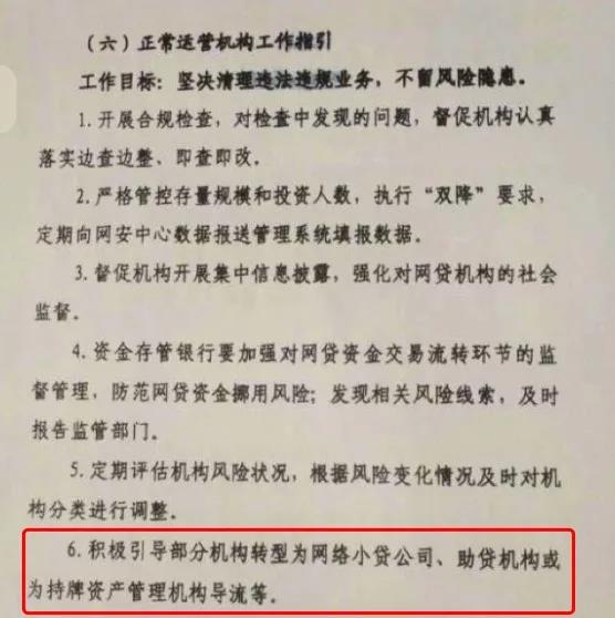 6.积极引导部分机构转型为网络小货公司、助贷机构或为持牌资产管理机构导流等。