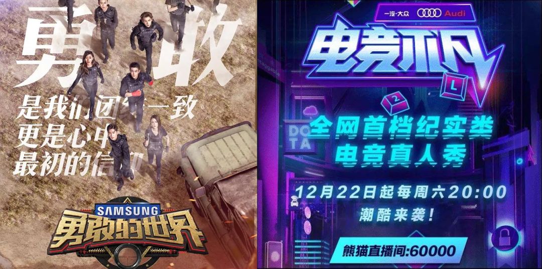 期间,芒果tv和熊猫tv也陆续入局电竞综艺市场,分别推出了“吃鸡”综艺《勇敢的世界》、大型电子竞技pgc节目《电竞不凡》。