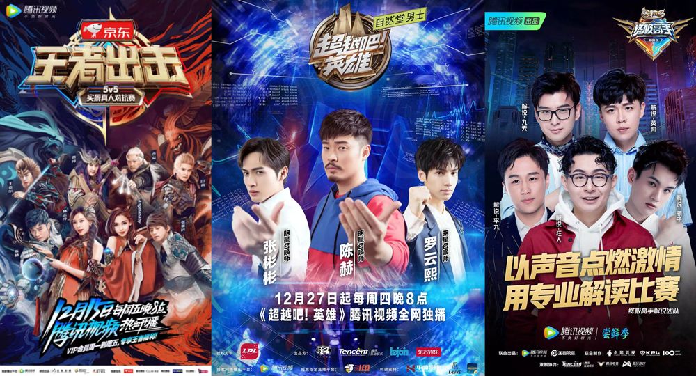 随后,腾讯视频又陆续上线了根据《王者荣耀》游戏改编的明星真人实景对抗节目《王者出击》、“英雄联盟真人秀”《超越吧,英雄》,以及刚开播不久的职业电竞真人秀《终极高手》等。