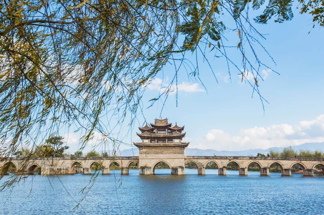 双龙桥站位于建水城西约1.5公里处,双龙桥又称“十七孔桥”,始建于清朝乾隆年间,是云南古桥中最长的多孔连拱桥。就跟朝阳楼和天安门一样,双龙桥和北京颐和园里的十七孔桥也有异曲同工之妙,所以茅以升在《中国古桥技术史》里专门提及这两座相隔万里的古桥。