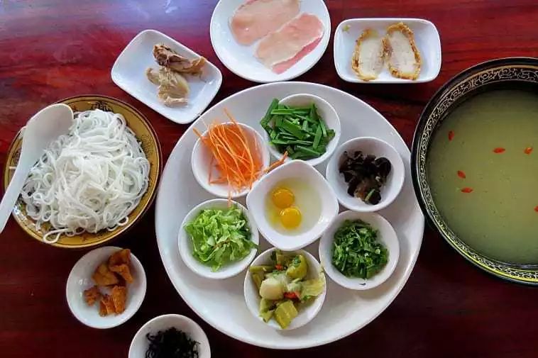 有10/20/30/40几个不同价位的选择,价位越高碟子越多,一般大家会选20元或30元的,20元包括8个配菜,30元是16个配菜,米线不够可以加。