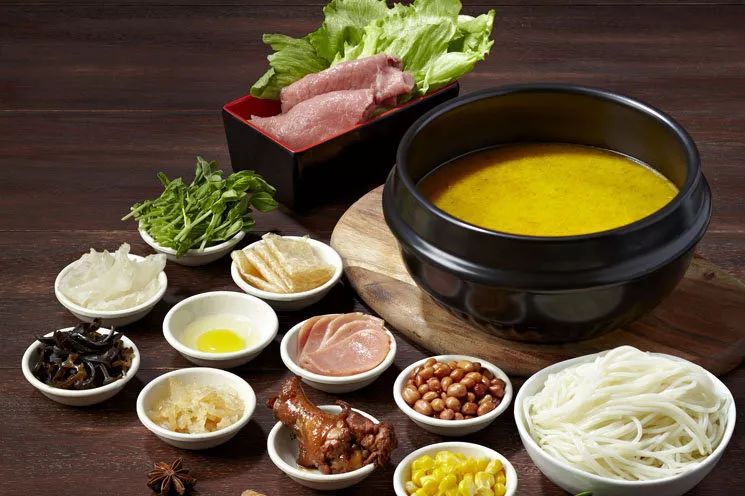 而秀才爱吃的米线和其他食材吃前放进鸡汤,口感更佳。