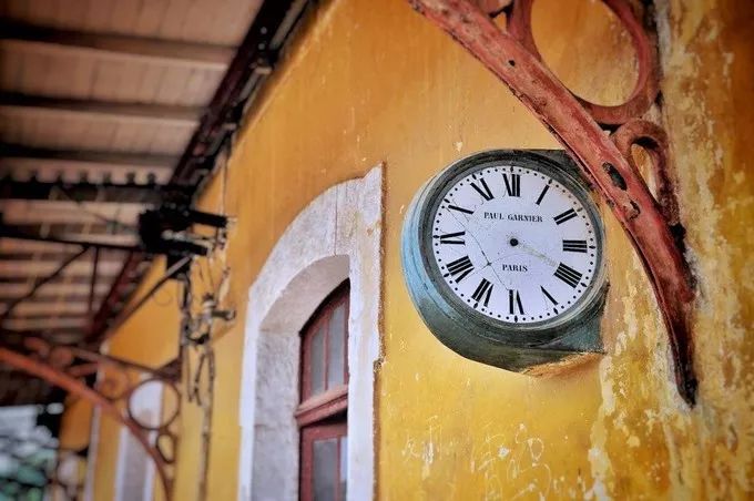 车站的建筑有着浓郁的法式风情,甚至车站上的钟上都写着“Paris”。据说几十年前,被下放的知识分子来到蒙自,在废弃的法国式庭院里发现了结着紫色果实的葡萄藤,并不好吃。