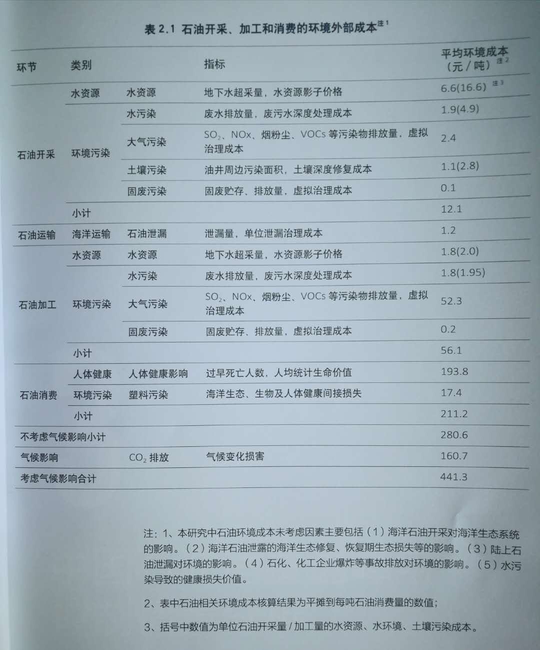 生态环保部环境规划院大气环境规划部研究员陈潇君表示,石油的环境外部成本是指在石油的开采、运输、加工与消费过程中,对水资源、大气、土壤等带来的环境影响,以及气候影响和健康代价等。