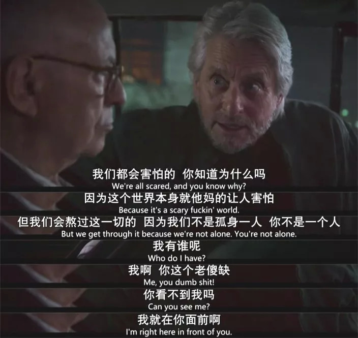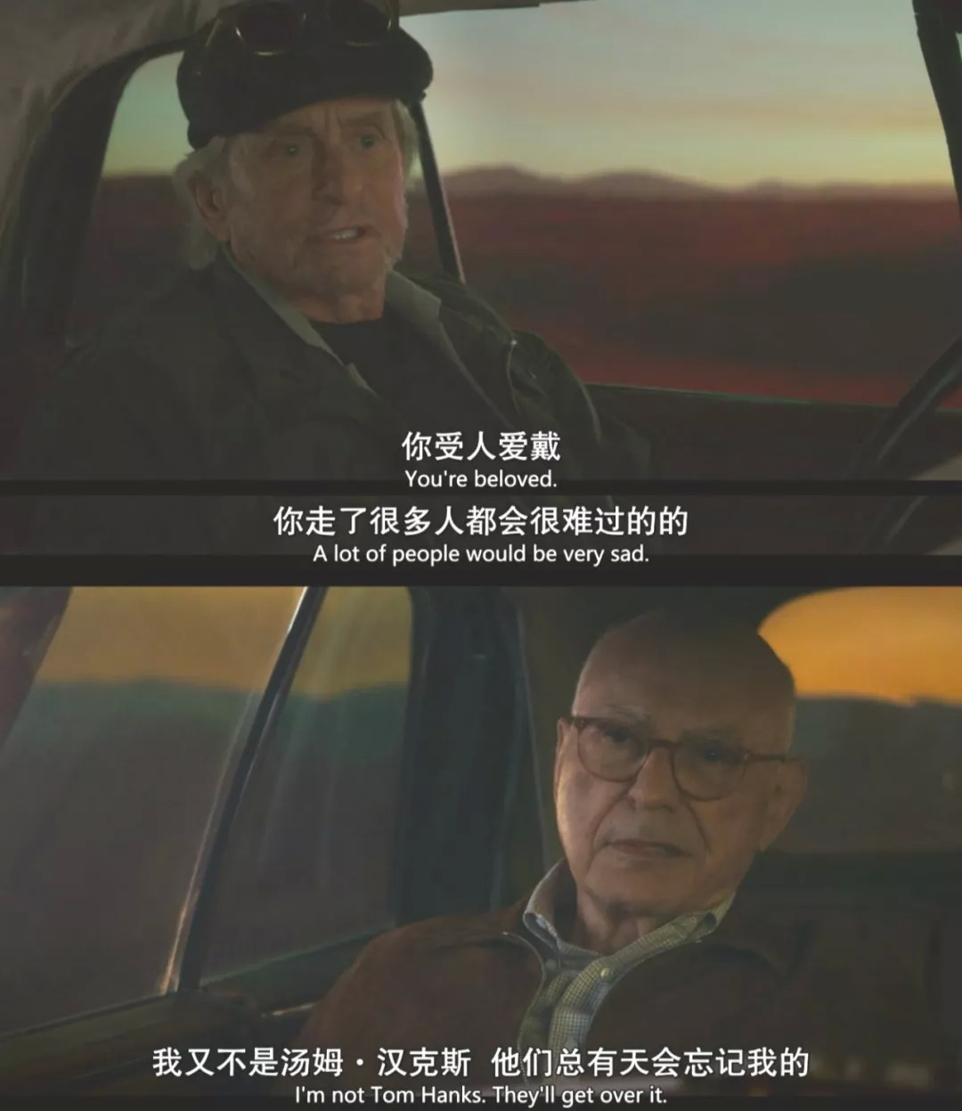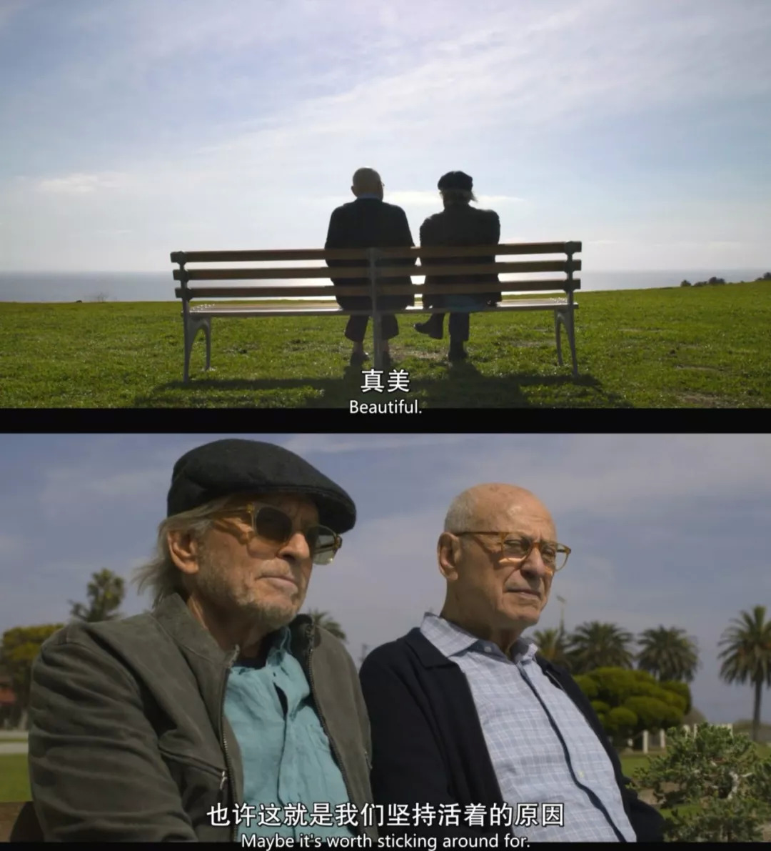 结尾处,当看到两个互相逗趣谩骂的老爷子的背影消失在医院走廊尽头,我笑着笑着就哭了,感叹他们的孤单孑立;而当看到他们还能在长椅上嬉笑互损,我哭着哭着就笑了,哪怕再无人陪伴也不是绝对的孤单。
