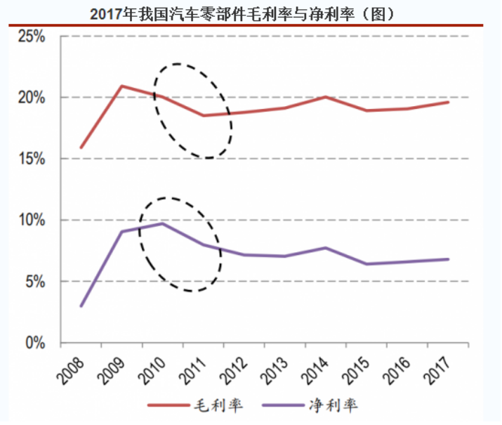 这对于技术门槛较低的汽车配件生产商来说,存量市场上的竞争充分,附加值也低,大型整车生产企业往往议价能力较强,给中小零部件企业的利润空间较低,一旦需求降低,中小零部件企业很难通过调整价格来维持生存。