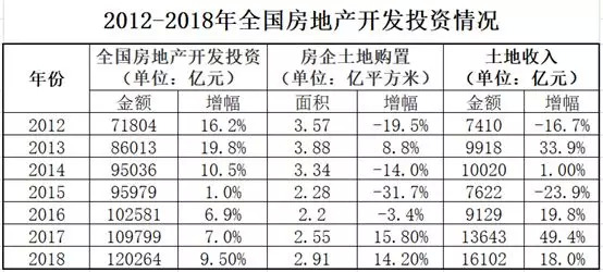 这不是2018年独有的现象。国家统计局2016年、2017年的相关数据显示,全国房地产开发投资分别比其上年增长6.9%、7.0%;土地购置面积方面,2016年比上年下降3.4%,2017年则比上年增长15.8%;土地收入方面,2016年增长19.8%,2017年增幅高达49.4%。