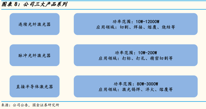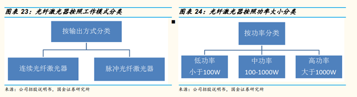 按输出方式:连续光纤激光器,2018年H1占营收的84%,脉冲光纤激光器,占16%,前者毛利率高。