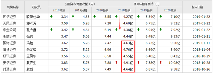 2018-2020年券商预测值(业绩预告发布后开始下调)