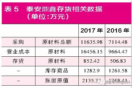而除了营收数据和采购数据异常之外,若进一步根据泰安鼎鑫采购及消耗数据核算,则其2017年的存货数据也是有很大疑点的。