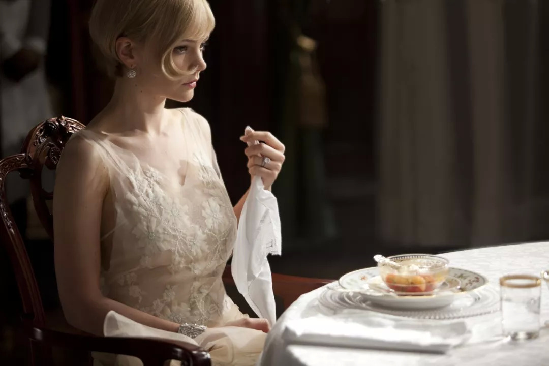 但是也正因为身处这样的阶层,黛西和汤姆才不可能穿这么花里胡哨的衣服,他们一般都穿白色,这种寡淡、禁欲的颜色恰恰象征着高贵不俗,材质也是需要仔细打理的棉麻丝绸,但是穿的人完全不用在意被弄皱弄脏,因为有仆人为他们熨烫洗涤。