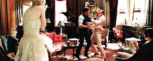 但是狡猾的汤姆嗅出了盖茨比的底细,揭发了他的豪门出身是假的,名校学历是假的,巨额财富也是来路不正,并嘲讽他:“你永远也不可能变得和我们一样,这是在血液里的,你懂吗?”这句话将盖茨比所有的努力贬得一文不值,他仿佛被打回原形,发狂失态,一直淡定自若的面孔变得扭曲可怕,而这才是脆弱真实的他。