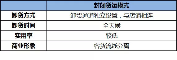 中、高端购物中心一般采取客货分流的卸货模式,中、低端购物中心一般采取客货混用的卸货模式。