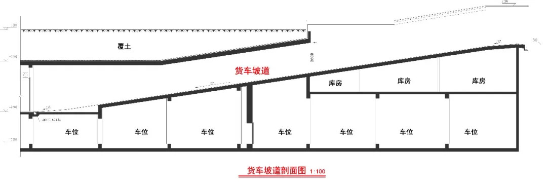 (注:货车道直行坡道坡度控制在15%以内,弧形坡道坡度需在12%以内,较常见的坡度比例为1:10)