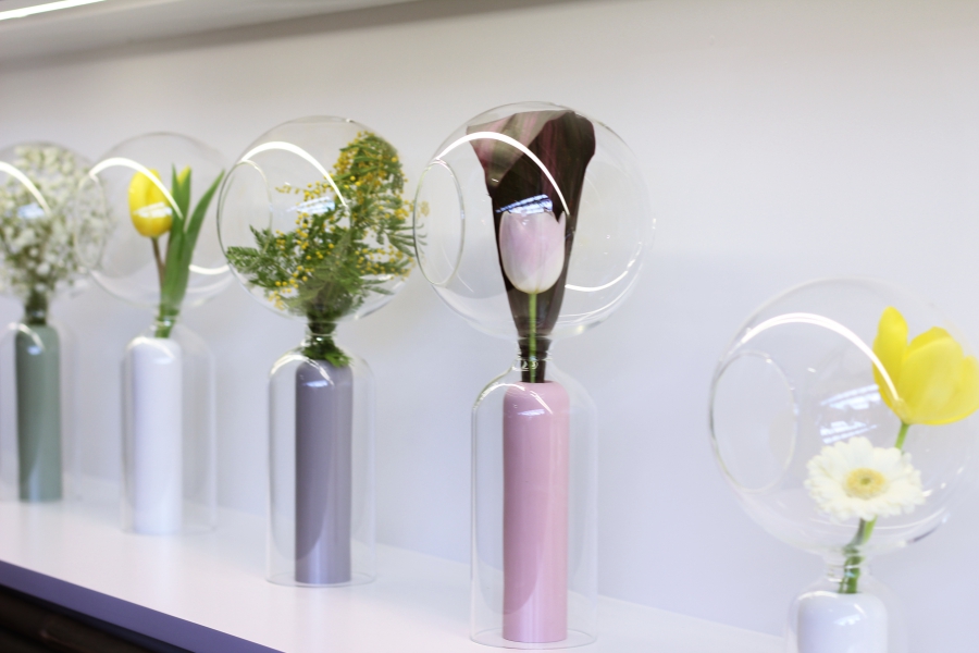 比较显眼的还有日本设计师佐藤大为哲品设计的各种花器。新设计的花瓶外罩着一层玻璃的设计自带清新感,鸟鸣系列花器小巧可爱,为生活增添趣味。