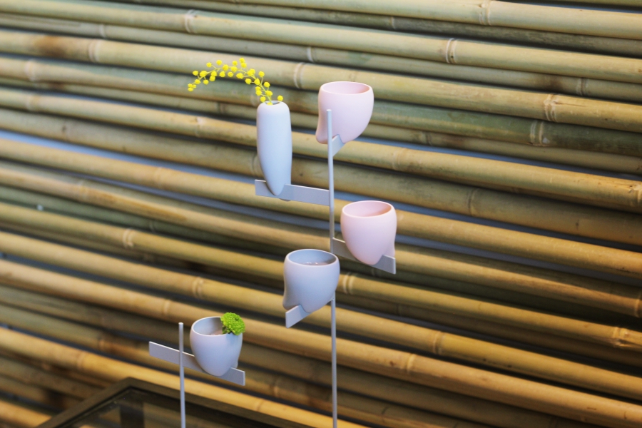 承载这些花器的是佐藤大设计的全新Waterwall系列餐桌和餐椅,设计简约、耐看。