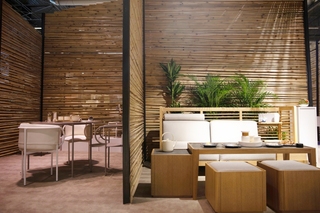 随着时间的推移,光线透过竹子投射在另一面竹墙上,有一种光影交错的即视感。展会现场,我看到很多人,尤其是国外的设计师,会不由自主地走进来,感受一番东方气韵。