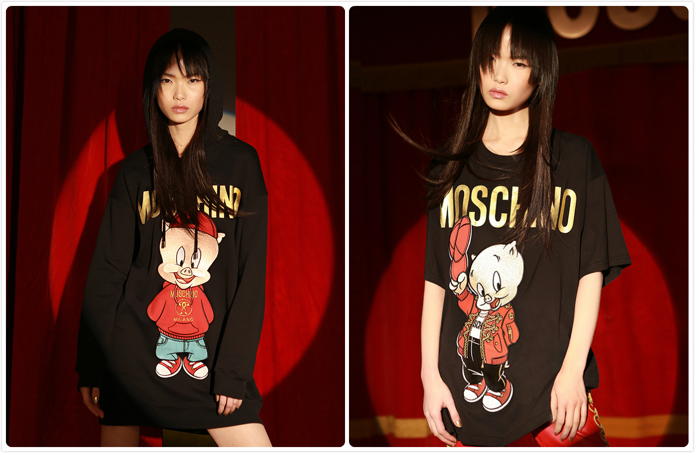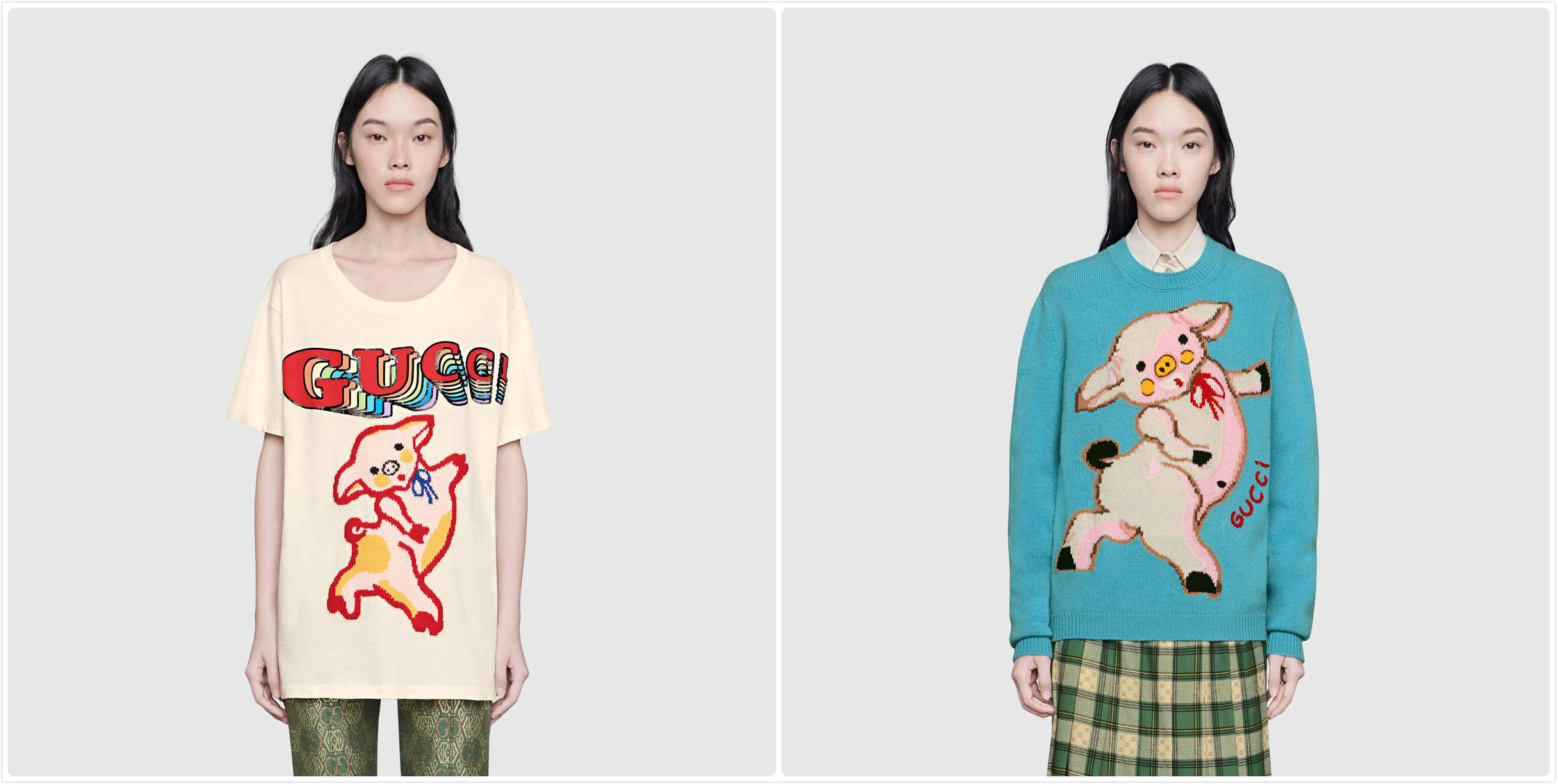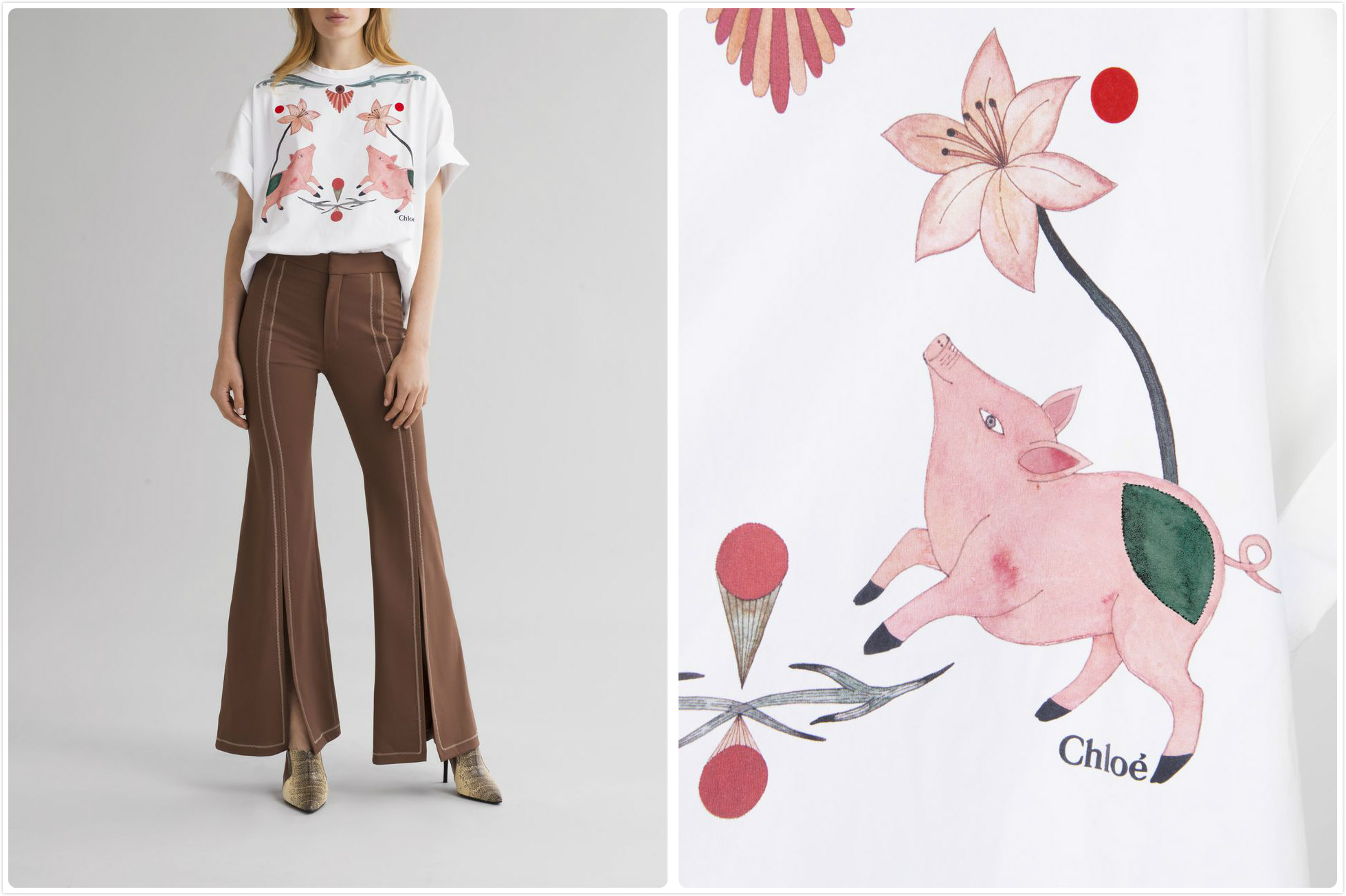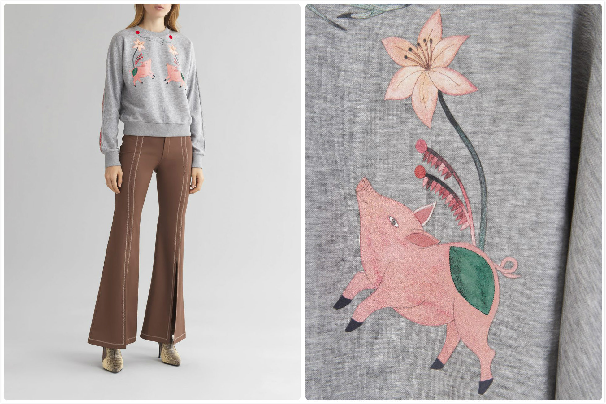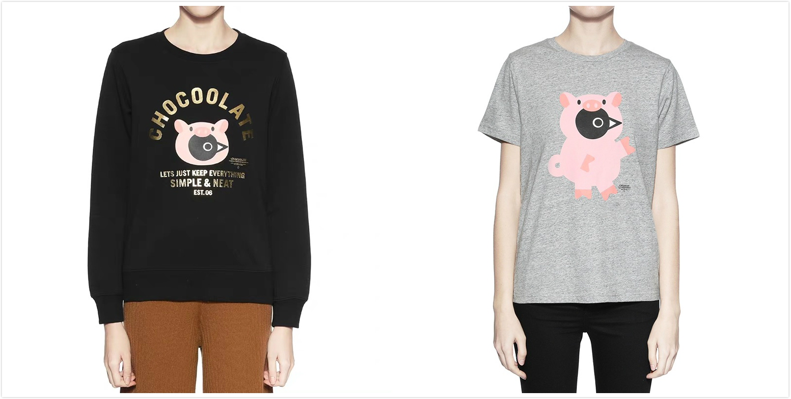 就看见衣服鞋包上的猪偶尔变大变小,偶尔可爱或冷酷;有的藏在图腾里,有的抽象有意境……出场模样丰富地简直让人眼花。看多了还很可能会有一种错觉,好像不把猪穿在身上,这一年就过不好,起码是过不时髦了。