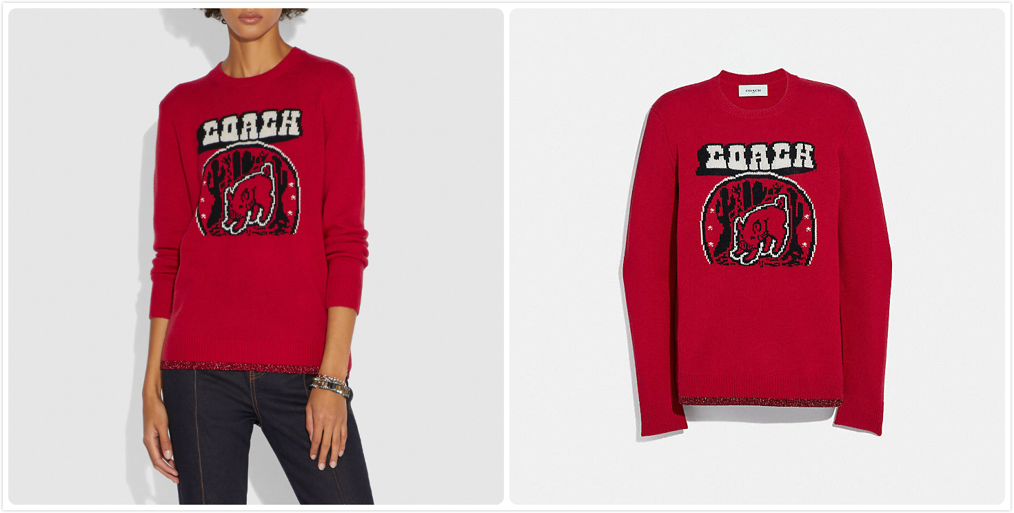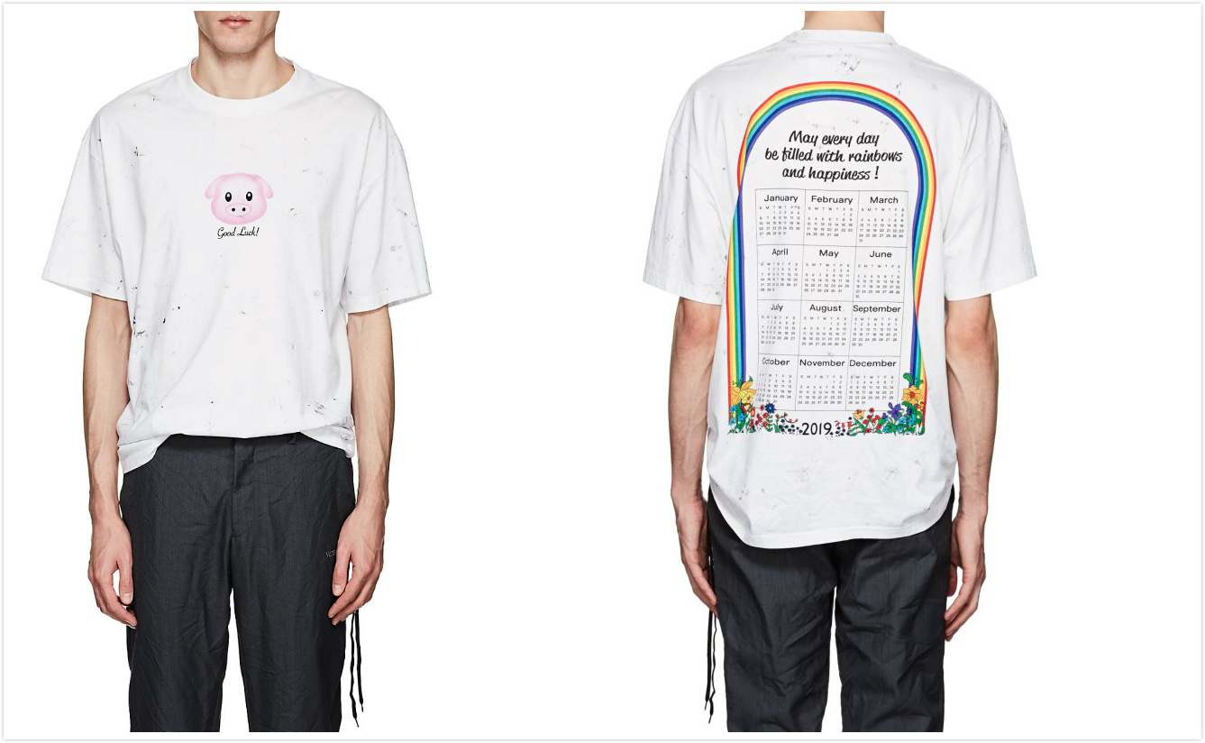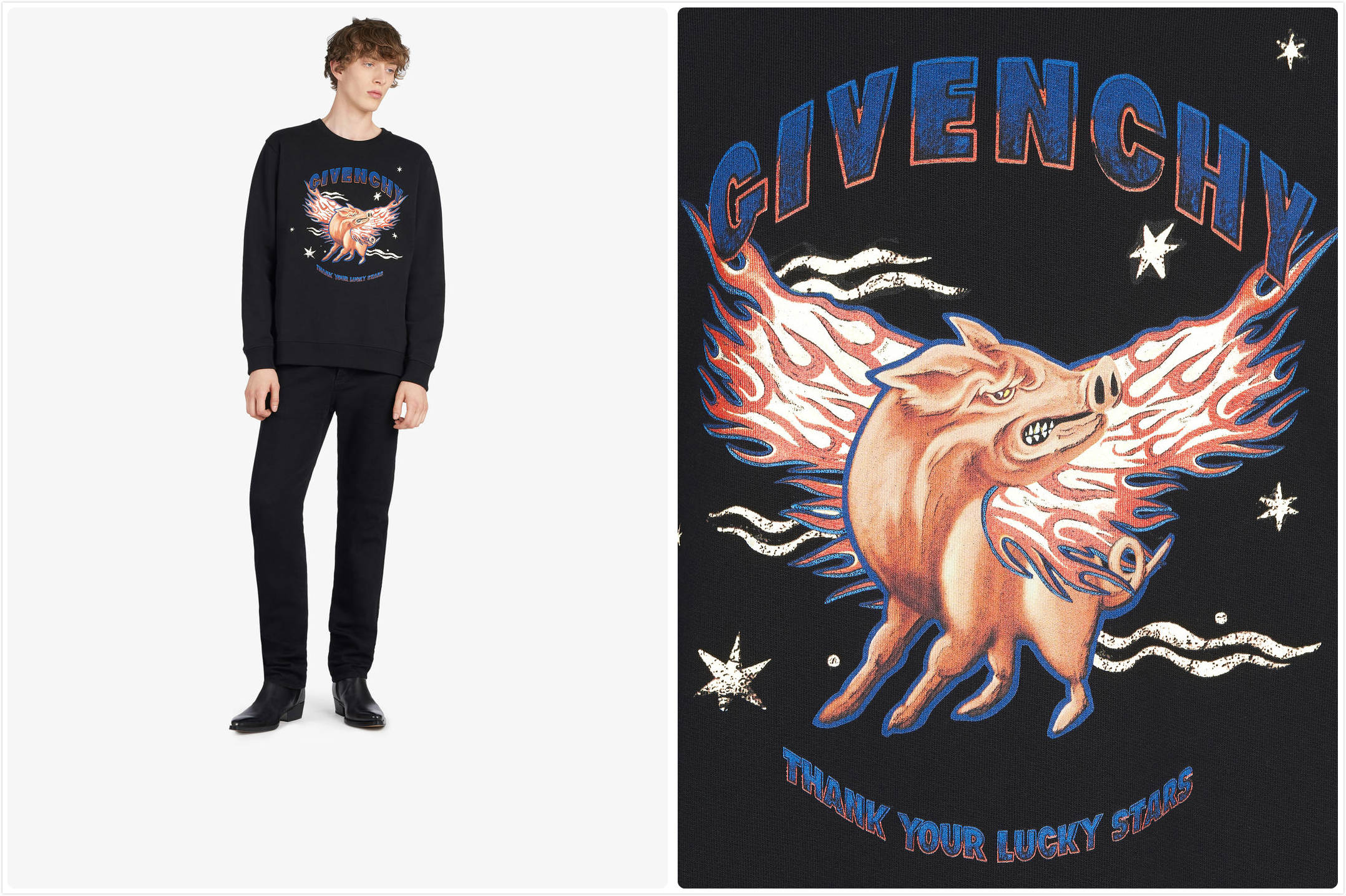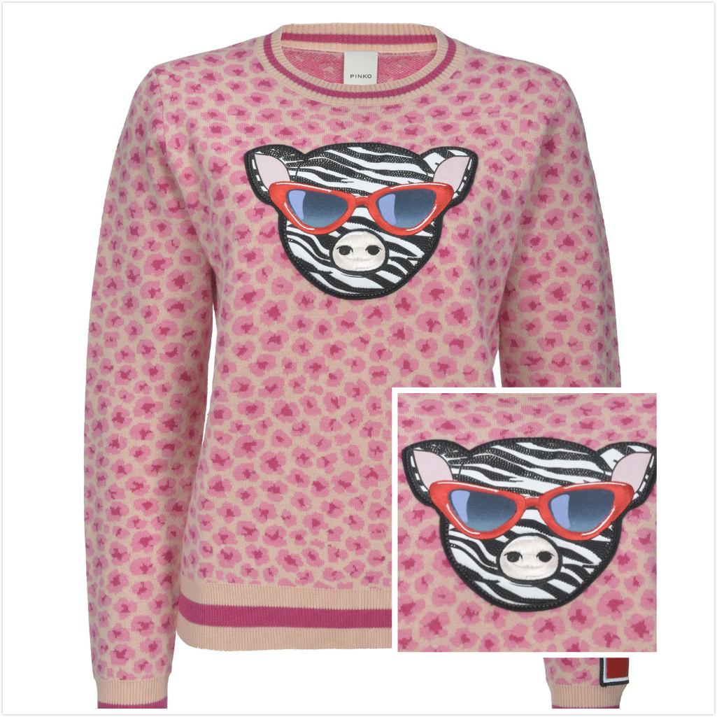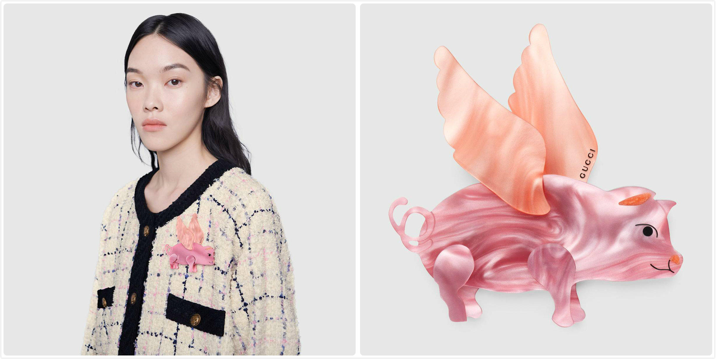 就看见衣服鞋包上的猪偶尔变大变小,偶尔可爱或冷酷;有的藏在图腾里,有的抽象有意境……出场模样丰富地简直让人眼花。看多了还很可能会有一种错觉,好像不把猪穿在身上,这一年就过不好,起码是过不时髦了。