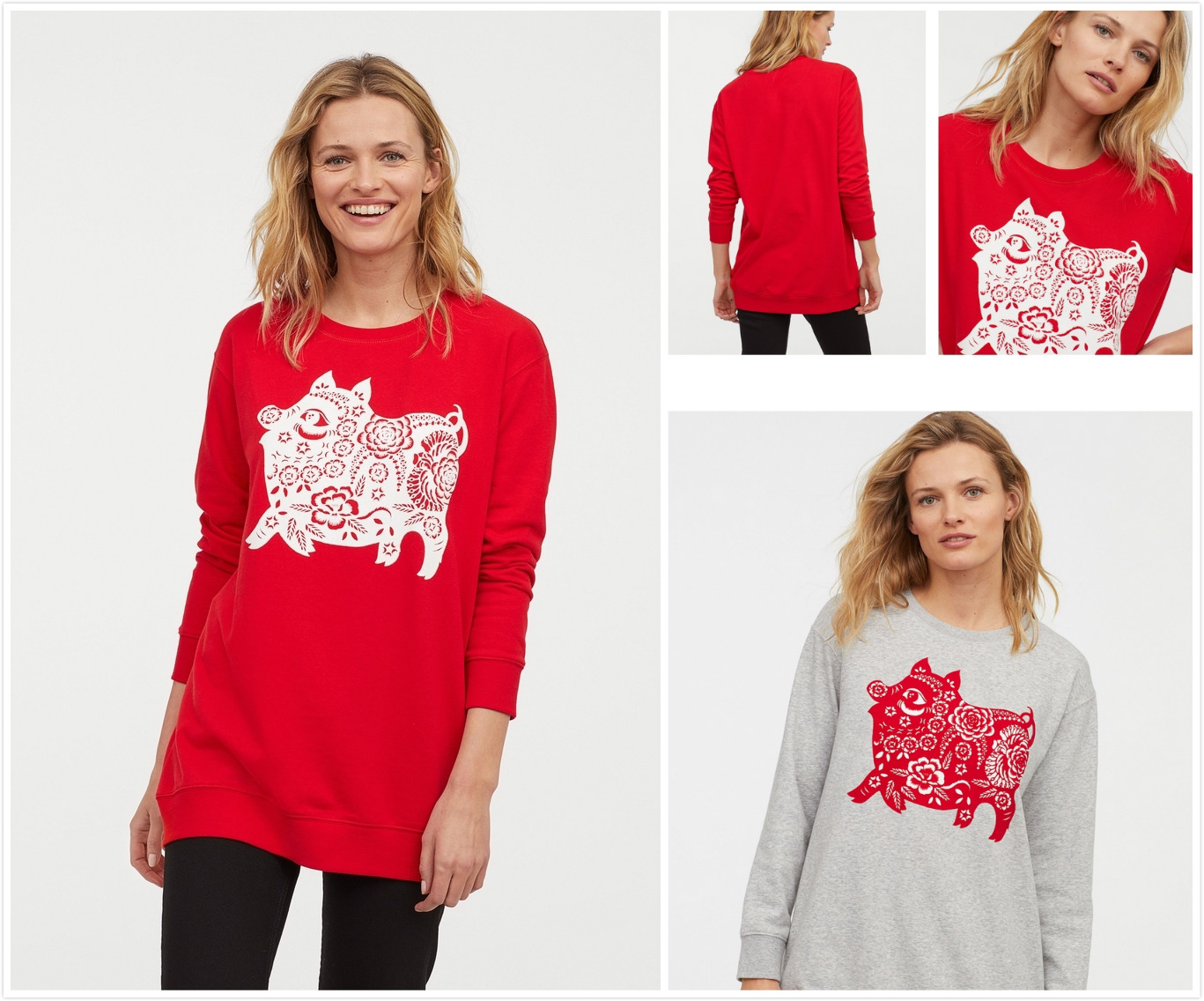 新年穿新衣是习俗,那猪年最应景的穿搭一定是穿红色且有大型猪图样印花的衣服。穿上这样的衣服,绝对制霸全家,让七大姑八大姨起码在穿着上找不到火力点。