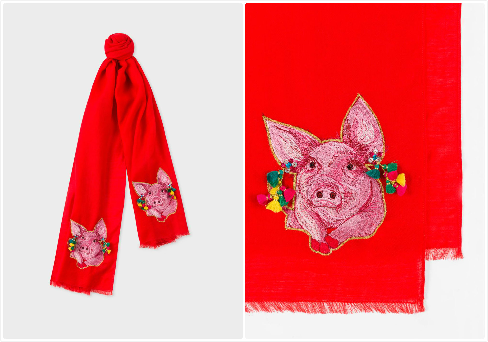 中意的红衣服可能难找,好在有猪的红色配件也有不少:帽子、围巾、包包,再不济还有袜子,甚至从口袋里摸出个红色卡夹也不错。