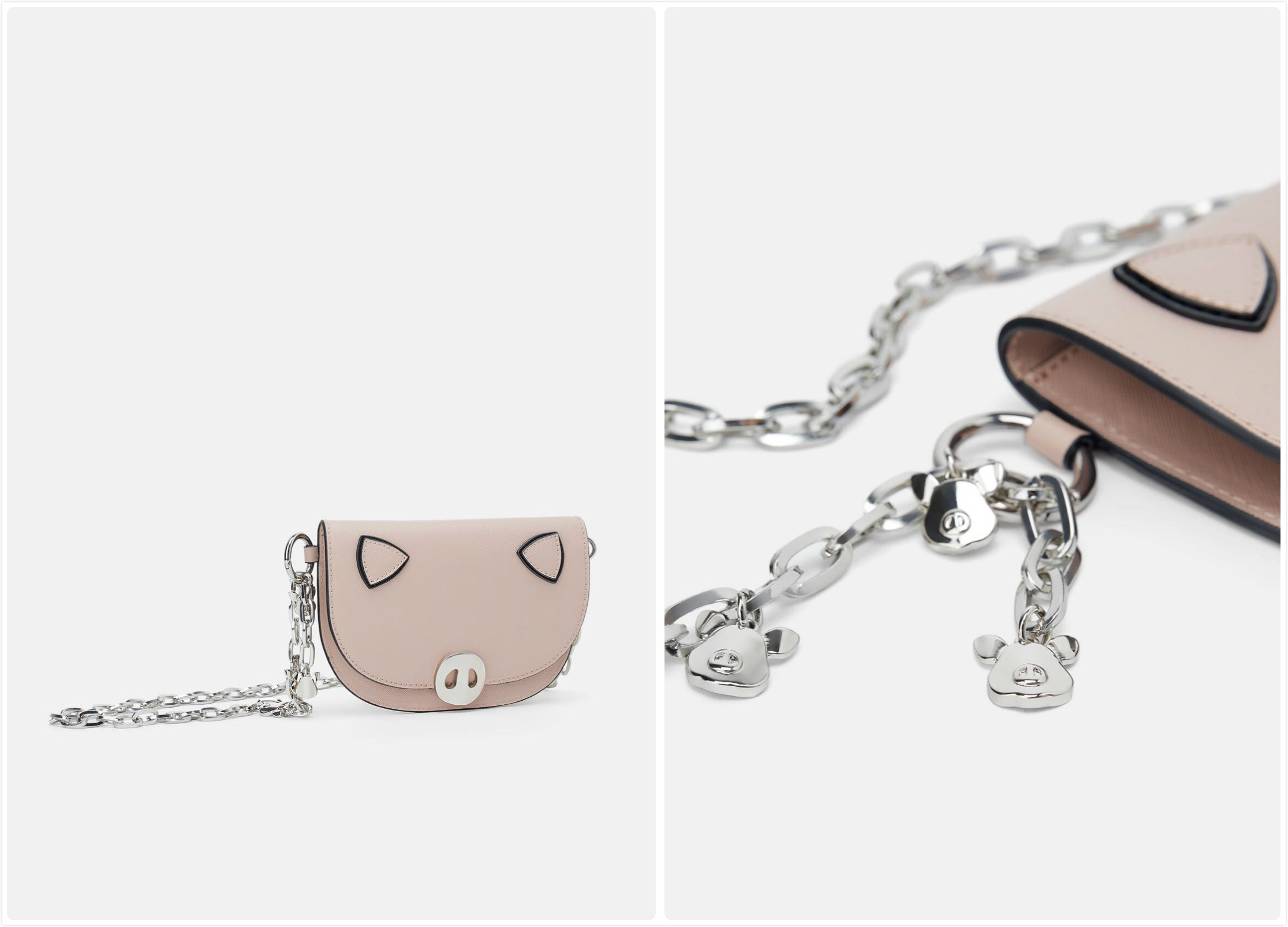为求低调,比起穿带有猪的衣服,更多人还是愿意选择戴有猪的配件。比如包袋。不管穿着风格如何,背上一只小猪包绝对瞬间让你成为整条街最有猪年风味的崽。可爱的猪造型斜背包、最时尚的链条腰包、有点街潮味的双肩包,你应该总能找到自己想要的那个“点睛之笔”。