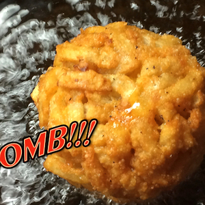 拿出晚餐剩下的薯条,切点碎干酪混进去,中间铺上芝士片和肉饼,轻轻捏成一团,再放到油锅里炸一炸……你也能随随便便制造一枚“薯条汉堡炸弹”端出去祸害基友。