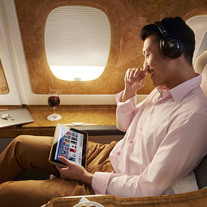 阿联酋航空于近日推出了一项新服务,乘客在出发前可以在航空公司App中创建自己的播放列表,上飞机后连接机上WiFi这些内容会自动同步到座位上的娱乐系统中。