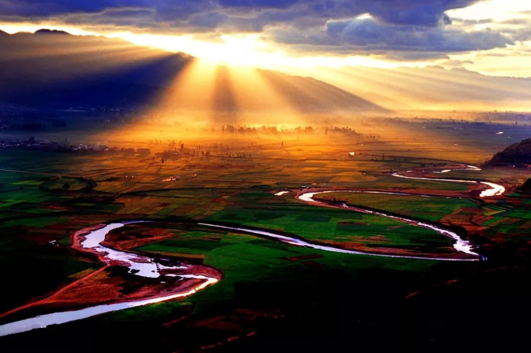 在云龙县有一个大自然铸造的奇迹,太极图,站在山顶俯瞰,S形的河流把村庄一分为二,就像一个大自然摆下的太极图,而当油菜花开的时候,风景更是瑰丽。