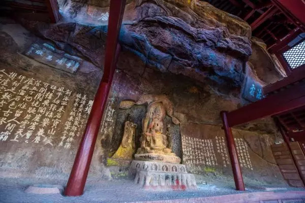 石宝山是一处丹霞地貌,山上风化的红砂石形状各异,有的成龟背状,有的如狮、似象、如钟,而且里边石窟和摩崖造像更是精美异常。
